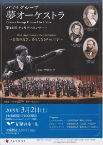 本日、パソナグループ夢オーケストラの第11回チャリティコンサートでゲストコンサートマスターを務めました。