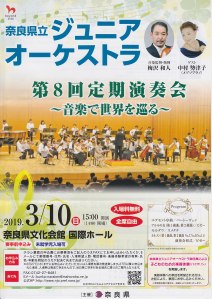 指揮・音楽監督を務めている奈良県立ジュニアオーケストラの演奏会のお知らせです。
